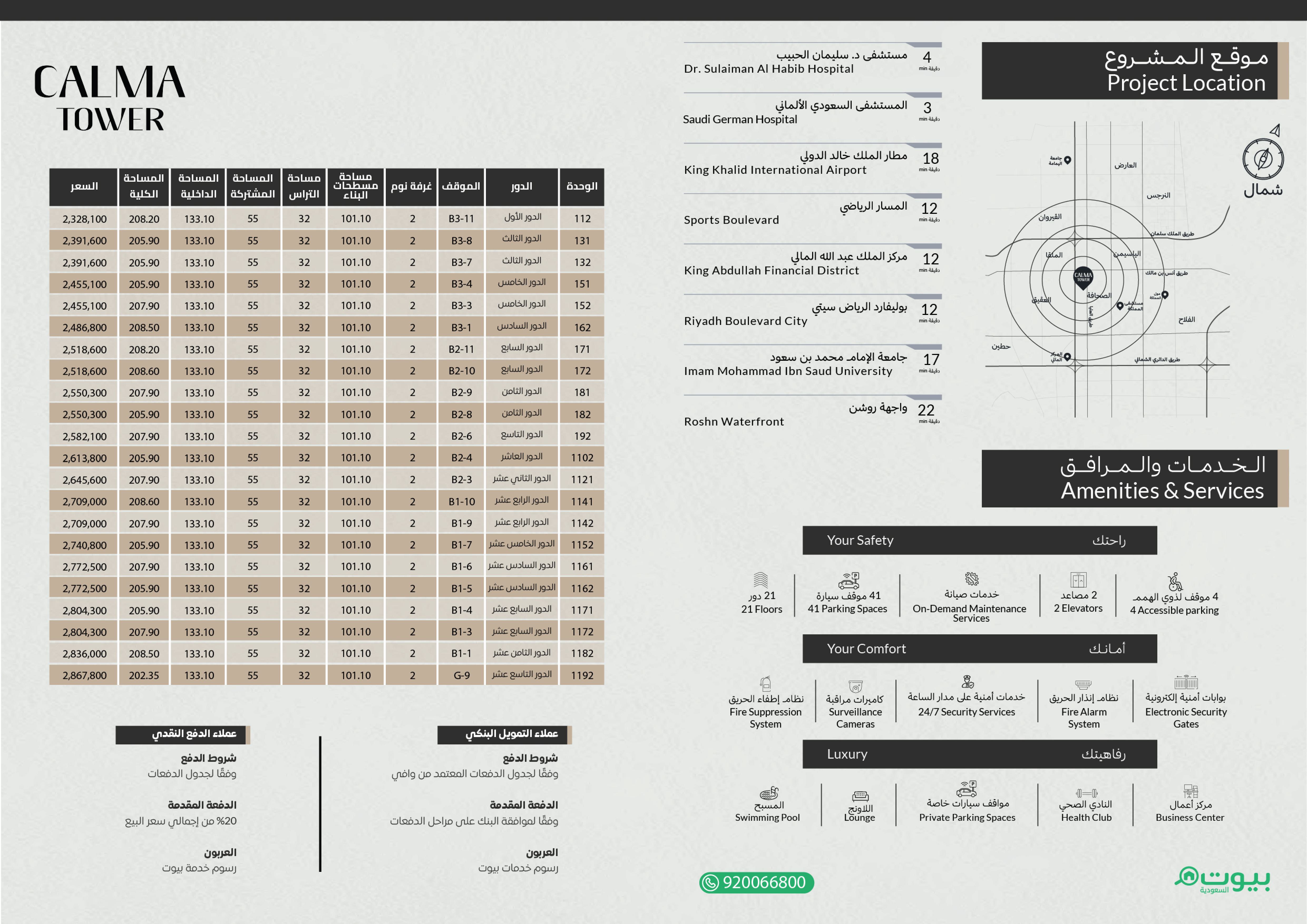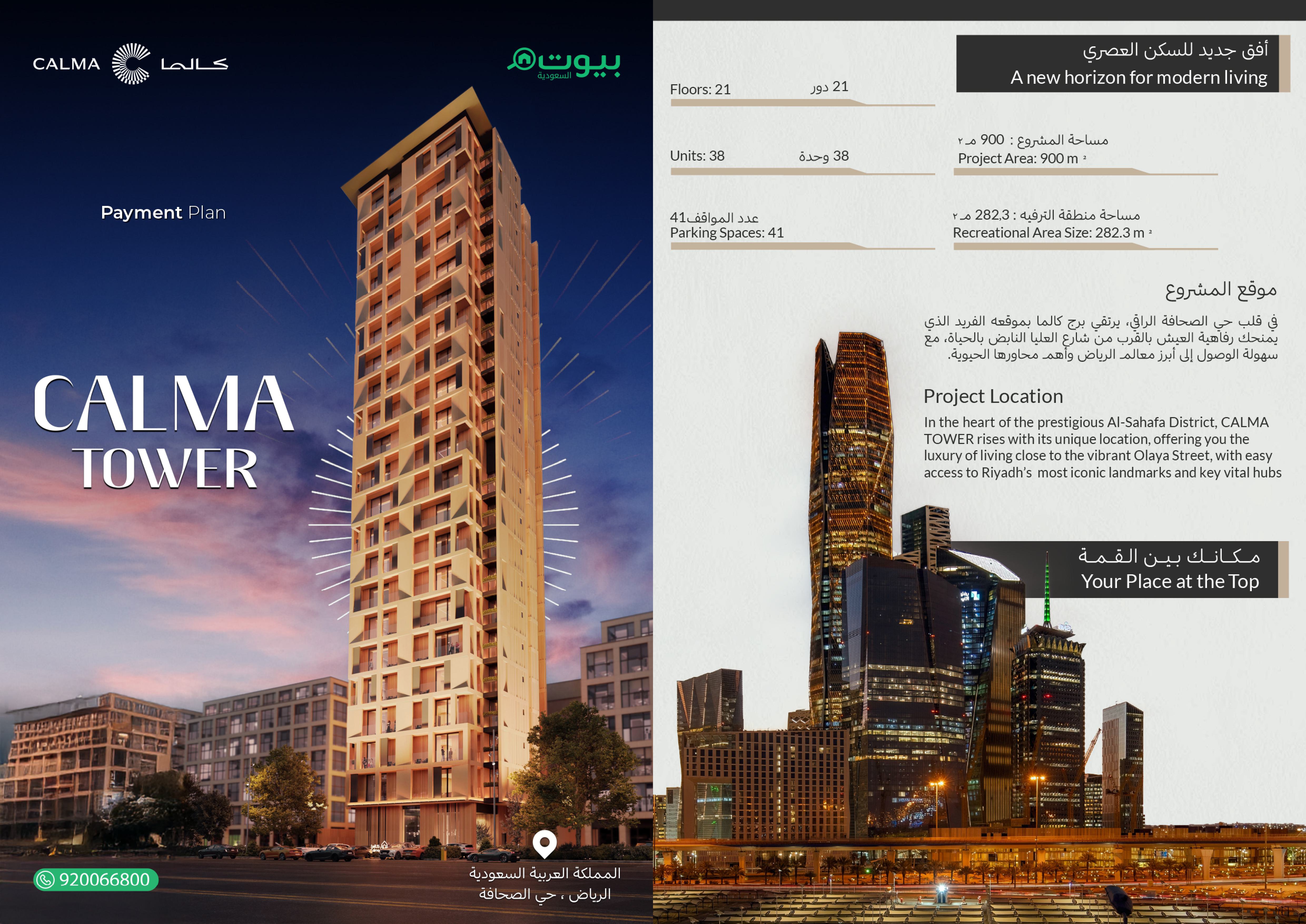 يعكس هذا البرج السكني المميز معيارًا جديدًا للحياة الحضرية الراقية من خلال توفير شقق سكنية عصرية تعطي الأولوية للأناقة والراحة والتصميم الذكي. سواء كنت تبحث عن منزل أو مستثمرًا، فإن برج كالما هو المكان الذي تلتقي فيه الحداثة العصرية مع راحة الحياة اليومية - مزيج مثالي للعيش أو الاستثمار في واحدة من أسرع المناطق الحضرية نموًا في الرياض.