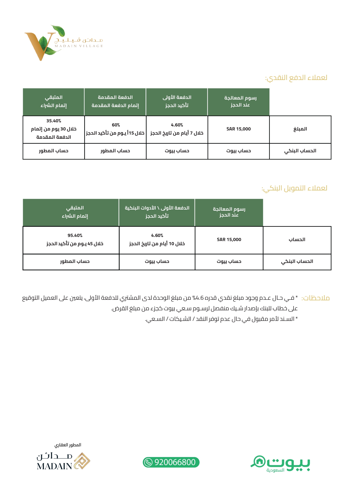 ملاحظة: مبلغ الحجز غير قابل للاسترداد، وسيتم إلغاء الوحدة إذا لم يتم الدفع في الإطار الزمني. - عملاء الدفع البنكي: